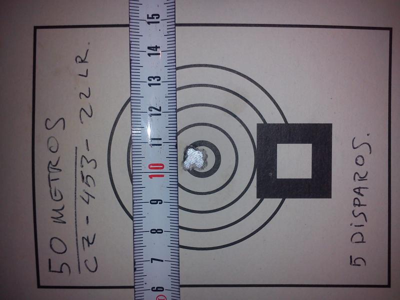 Por si te puede ayudar a tomar la decision,esto es un blanco oficial de BR-50,con 5 disparos a 50 metros apoyado en una torreta Caldwell y saquete trasero...0´9 cmt.de extremo a extremo.