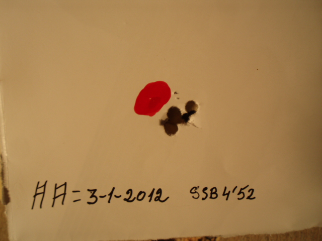 Esta es la prueba de la tx 200 del centrado del visor seis inpactos a 25 mts y con municion del 4,52