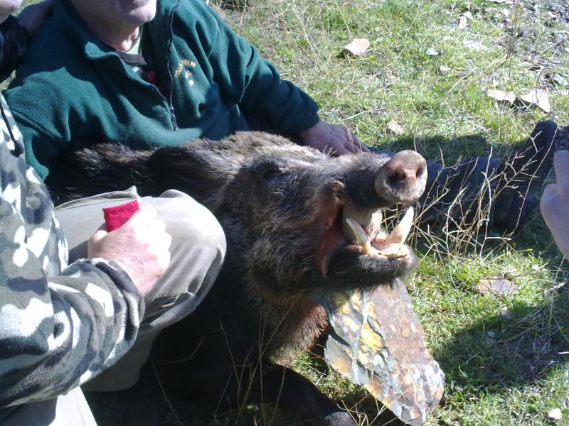 Este se mató en Roses, Girona, lo mató el compi Felipe con tres tiros de un 30-06, de los cazadores de por allí, es él de colmillos mas grandes que se recuerdan, el cerdo era de unos 80 Kg, pero ya se le veia viejo, se nos habia escapado una vez, pero esta, no, parece que fue medalla de oro, según dijo.