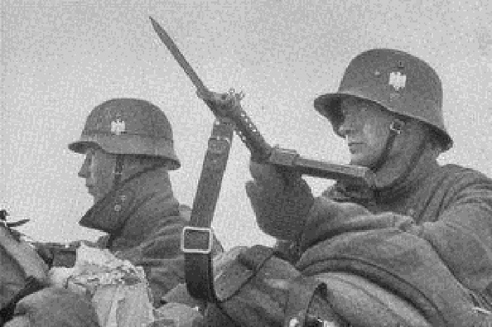 el fusil que portan los soldados Alemanes son Steyr Mannlicher M95 de cerrojo rectilineo y calibre 8x56R