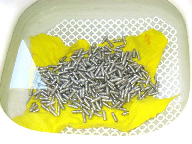 Otras puntas las metí en el horno de casa, precalentado a unos 220ºC, aquí hay que tener cuidado, por que en la primera hornada se me fué la mano y al ir a sacar las puntas ¡Se habían derretido!, en la segunda hornada tuve mas cuidado y estuve mas pendiente de ellas, bajé un pelín la temperatura del horno y las aguanté una media hora, en este momento vi que comenzaban a sudar ligeramente, por lo que las saqué y las sumergí en un bol con agua y hielos. Como había leido en unos artículos americanos y en otro que escribió Mextaniz, las medidas de la dureza las hice a la semana de haber dado el tratamiento y una segunda medida a los 18 días de haber templado.