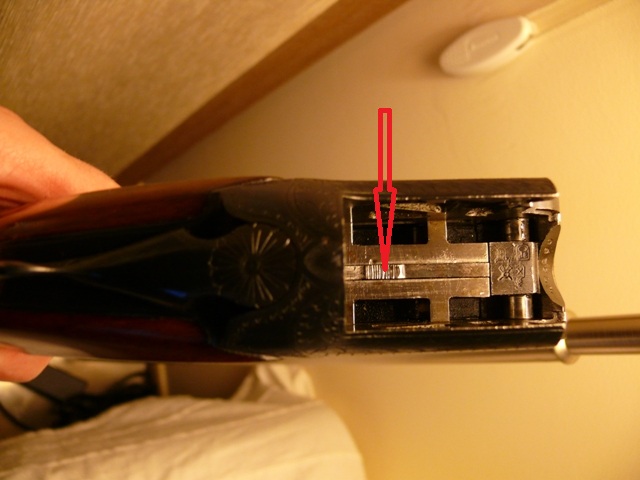 Con el arma abierta, la palanca normalmente está desplazada a la derecha. Al cerrar el arma, dicha palanca debería volver automáticamente a una posición más o menos centrada. En las escopetas nuevas, ligeramente a la derecha, en las muy usadas, al centro, pero nunca a la izquierda. Si tienes que mover manualmente la palanca, probablemente el muelle estará vencido, por lo que, para asegurar un cierre adecuado, es necesario reemplazarlo.
