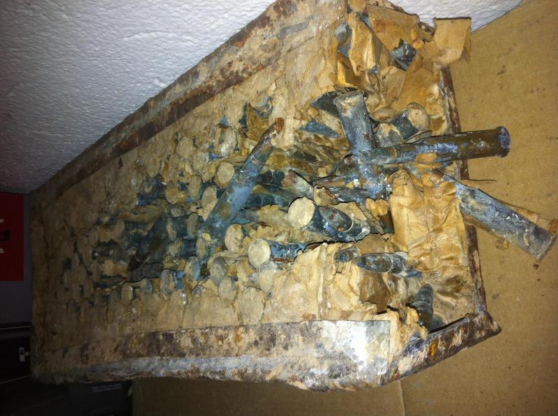 yo lo único que veo que puedes hacer es sacar la munición por supuestos los papeles y cordeles no se salvan , la munición la metes en un cubo de vinagre y con un cepillo de latón le vas ayudando a que salga la mierda cuando queden limpios aclaran bien con agua y secar bien y luego engrasar levemente,la munición se quedara inutilizada, para colección.