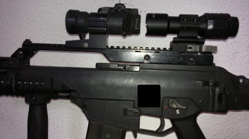 Está construido para ser compatible con los visores de altura estándar, por ejemplo, de la familia Aimpoint, como el que se puede ver en la 1ª fotografía: ni falta hace decir los resultados que este aparatito obtiene con nuestros "Red Dot"...