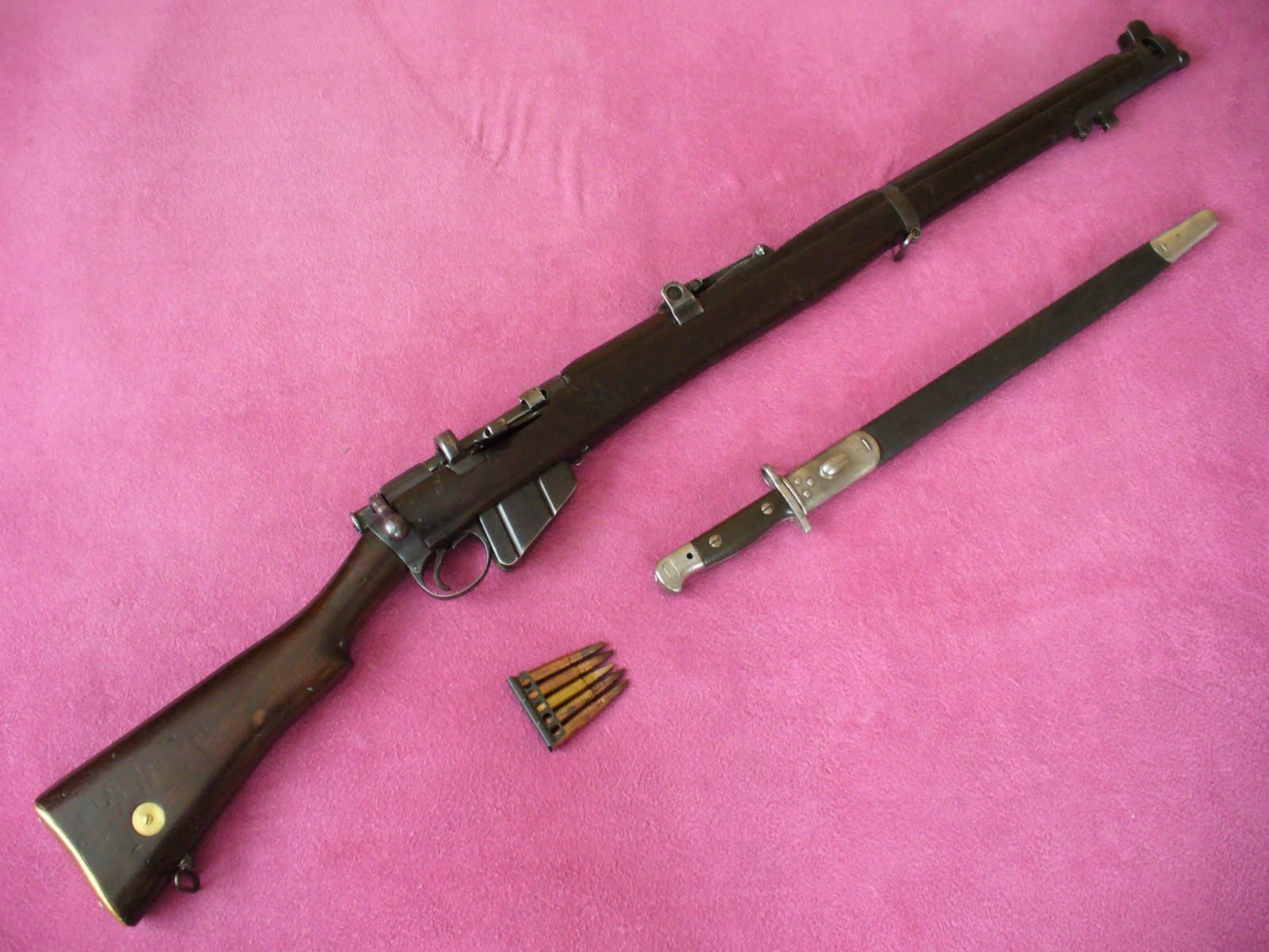 Este último es el mismo que está a la izquierda del Lebel en la foto anterior de los 5 rifles y no es otro que el británico Short Magazine Lee Enfield SMLE Mk III o rifle Lee Enfield Nº1 Mk III.