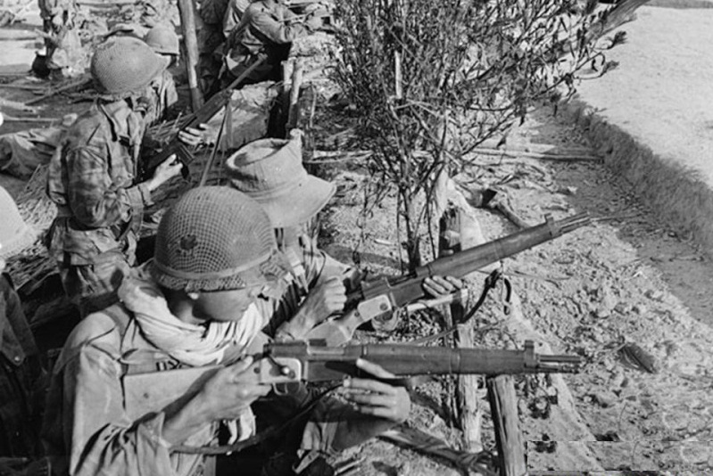 MAS 36 corto versión paracaidista, en manos de soldados franceses. Algeria o Indochina.