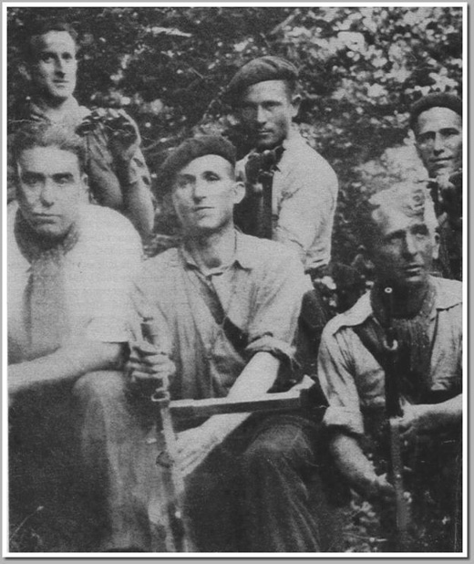 Es que ya de por sí la foto no era buena y ha perdido con el trasvase...pero el 2º, el 4º y el 5º por la izda llevan unas características fundas negras de pistola, que se vieron hasta hace bien poco, sumado a las bandoleras para peines, dan idea de su origen y de lo que puede haber dentro...