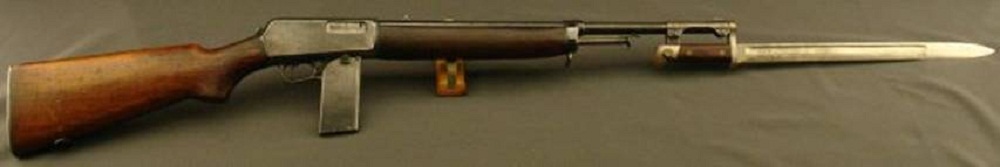 Además entre 1917 y 1918 Francia compró otros 2.200 Winchester Model 1907 para ser utilizado como rifle de asalto a trincheras y para eso fue modificado a fuego full auto y adaptado para poder acoplarle esta otra bayoneta de la imagen.