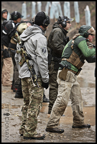 Bien, pues entre el personal dotado de pistola, a quien le beneficia usar funda del muslo es a servidores de ametralladora y otras armas medias, los proveedores de munición de estas y a elección a los snipers. Y, porqué? Pues porque su cometido les va a condicionar a servir sus armas principales tumbados, a fin de lograr mayor estabilidad, protección y precisión. Y, si necesitasen hacer uso de su arma corta, en situación de último recurso, su extracción es más fácil que en la cadera. También, durante un asalto, un tirador de Ametralladora para estabilizar el arma mientras dispara marchando y moviéndose ha de usar la cadera para apoyar la mano que dispara para dirigir el tiro con mayor eficacia y absorber el retroceso con mayor equilibrio.
