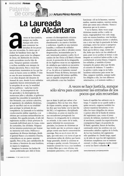 Ermitanio escribió:En el suplemento dominical de mañana D. Arturo Perez Reverte les dedica su espacio.