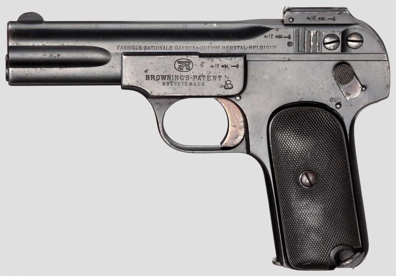 FN 1900: Longitud total 164 mm, Longitud del cañón 102 mm, Peso 625 gr.
