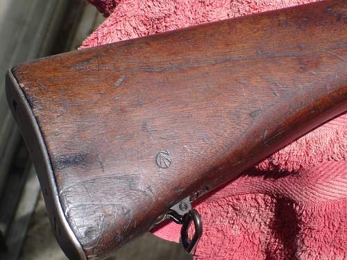 La marca de la punta de flecha es la llamada "Broad Arrow" y es el punzón de aceptación característico históricamente del ejército Británico.