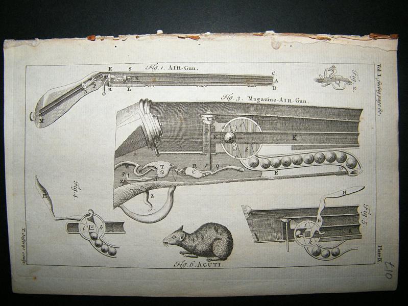 Tampoco es el Girandoni el rifle de repetición mágico, menos aun el "fusil de asalto" fuera de su tiempo que nos mostraba inicialmente Robert Beeman. Solo hay que consultar la enciclopedia britaenica (prácticamente el internet de la época)para observar en sus laminas el diseño de un rifle de aire de repetición mas de medio siglo antes del uso del Girandoni.