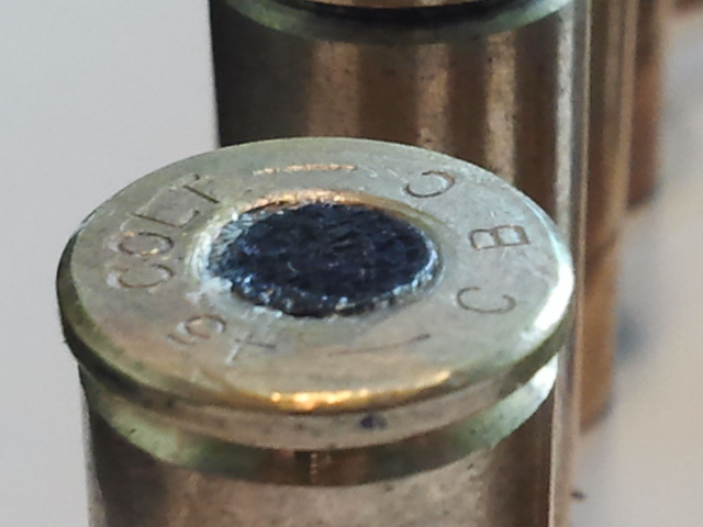 Y por último una vista del interior de la vaina, en el que se observa el canal de combustión por el que pasa la ignición originada por la percusión y detonación de la carga explosiva del pistón, la cual a su vez provoca la ignición de la pólvora contenida en la vaina (seguro que me he expresado como "salva sea la parte" [ o, lo que es lo mismo, como el culo ] , pero le he puesto mi mejor intención y el mayor de mis empeños; así que si está mal, me corregís y punto, que mi única neurona no da para más