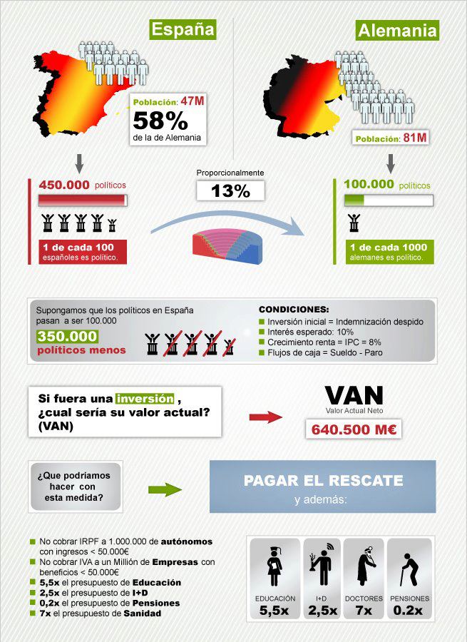 Te han engañado, no tenemos 400.000 políticos España, no llegan a 100.000, las cuentas del cartel son el cuento de la lechera. Espabila.