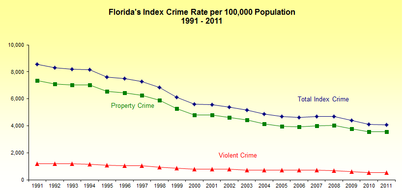 Florida passed "must-issue" concealed carry in 1987 in response to a boom in crime in Florida during the 1980s. Critics said that this law would lead to a "shooting gallery" and drive crimes through the roof.