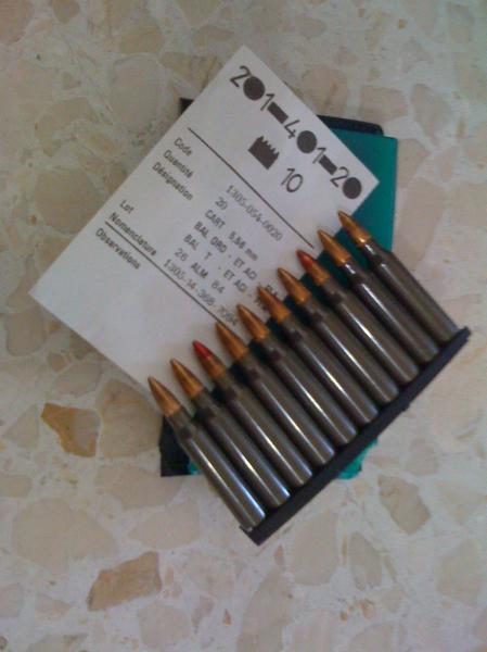efectivamemente compañero los franceses usan vaina de acero y m193 para el paso antiguo de su fusa, pues la recamara estriada del FAMAS suele desculotar los de laton,os dejo una foto del pack de cartuchos franceses con vaina de acero y proyectil m193,evidentemente el fusil frances al igual que el SA80 y nuestro L ha sido un fiasco desde el principio el tiempo pone todo en su lugar y es lo que esta pasando hay fusiles mejores y mas economicos.