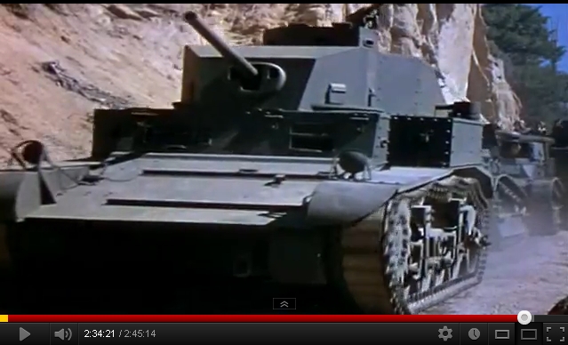 Hacia las 2 h 30 min vemos la famosa escena del puente. ¿Alguien puede identificar las tanquetas o carros de combate?: creo que una es una Renault, de las que Hollywood debió comprar unas cuantas cuando acabó la 1ªGM.