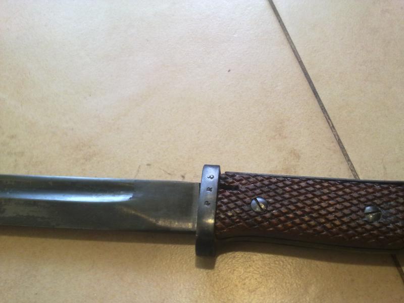 Buenas, he conseguido esta bayoneta de un kar 98 con el marcaje P.R.8, tengo entendido que es Parque de Recuperación número 8 de Baleares, pero no sé nada mas, segun entiendo son las que llebarón con la Legión Condor a la Guerra Civil y se utilizarón en la postguerra de el ejercito del aire.