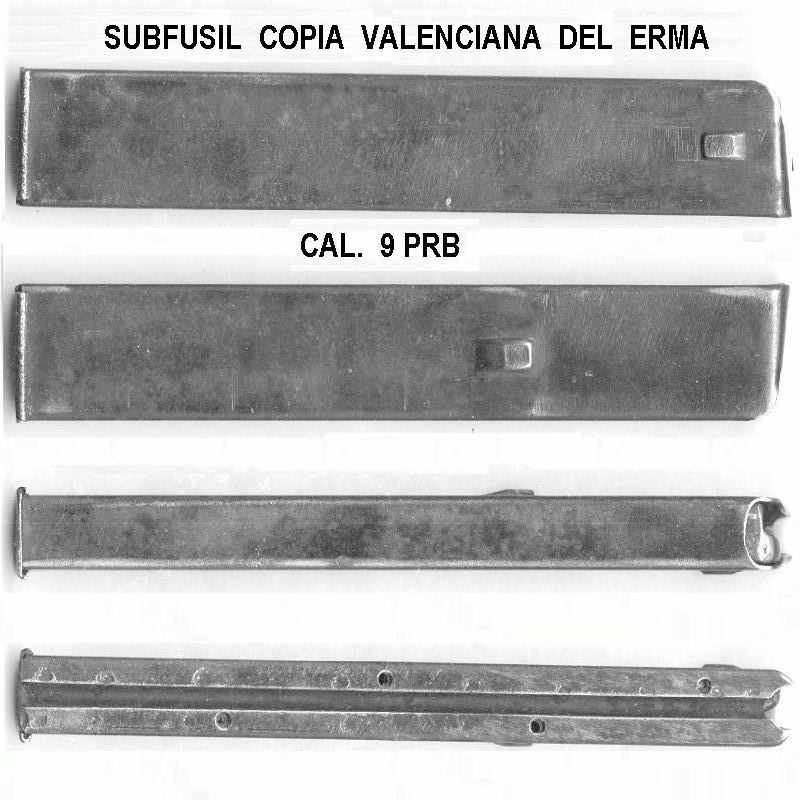 Me han llegado noticias de la existencia de un subfusil copia del ERMA en calibre 9 Prb., fabricado en Valencia durante la Guerra Civil y luego continuado en La Coruña en el calibre tradicional 9 largo y añadiendole el seguro de transporte.