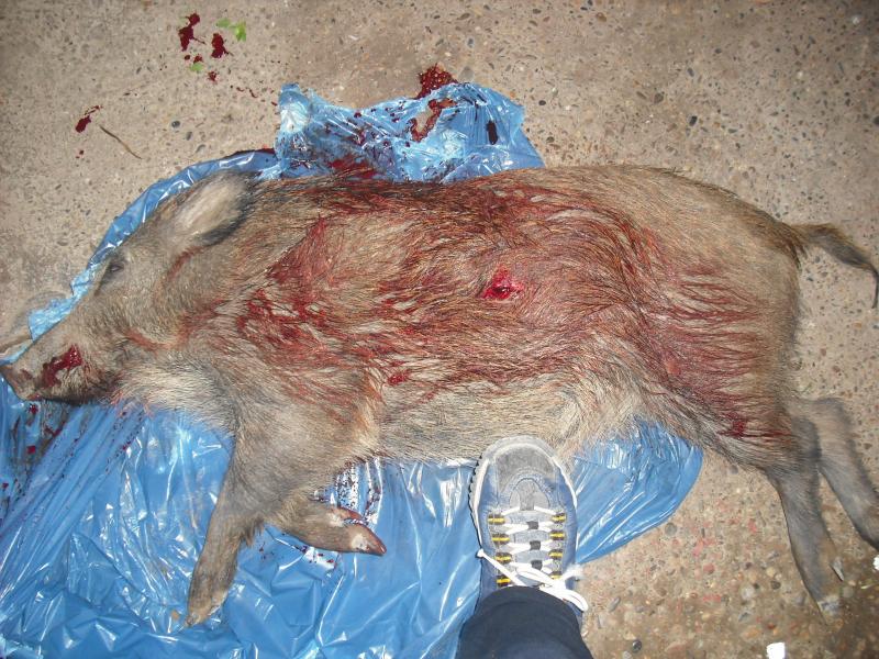 ale ya e bollao otro casquillo,que lance mas chulo e tenido,me a entrado una piara,iban 2 grandes y cuatro como el que e cazado,me an aparecido a 200 metros entre dos luces,pero se veian bien toda via,correteando para aqui y para aya,lo e estado viendo un buen rato y se iban acercando,al final a unos 70 metros y cuando estaban al lado de un maiz le e disparao a uno de los pequeños,disparo a la parte alta de la paletilla,no a dao ni un paso.una marranilla,que estofaos y ranchos mas guuuenoos hace mi madre.saludos....
