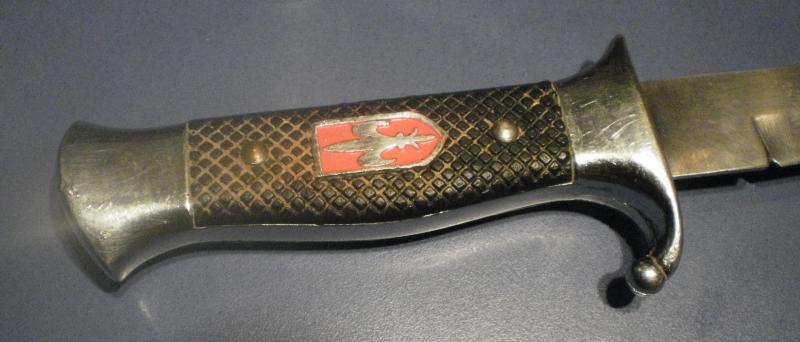 Es un cuchillo de los BOY SCOUTS, tengo algunos cacharros de ellos, cuchillo, silbato, correaje y creo que algo más, ya lo pondré.