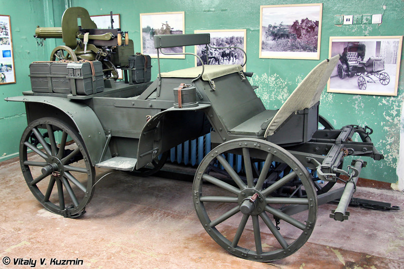 Fueron muy usadas por los rusos en la IGM, en la Guerra Civil rusa, en la guerra contra Polonia, aquí por los dos bandos, los polacos tuvieron dos modelos reglamentarios e incluso en la IIGM...Hasta los alemanes hicieron uso de ellas, armándolas con dos MG 34 para uso antiaéreo.