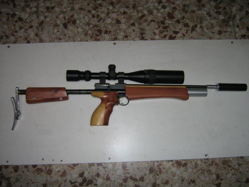 aqui os dejo como esta esta pasada a pcp, gracias a un forero que comenzo con ella y yo creo que la he terminado a mi gusto , tarando el regulador que de origen estaba a 65 bares , ahora esta a muchos mas , no se a cuantos me he liado lo he desmontado y con ayuda y soporte tecnico lo he subido "un pelin", el tubo que se ve de laton es una macro camara de baja, y EL RESULTADO ES ESTE. sabeis que no soy amigo de las dianas pero os dire que es muy,muy,muy precisa ,poco pesada y llamemosle alegre.