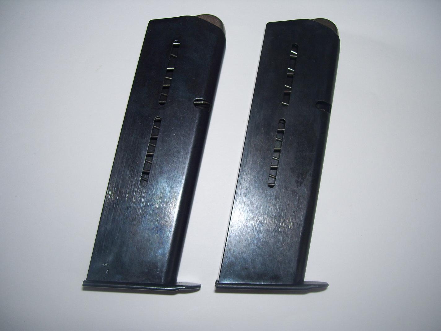 Mirando mejor las fotos se ve que tiene el cargador puesto pero de los que van embutidos en el armazón y tu pistola es de los que tienen tapa y esta queda en el exterior.