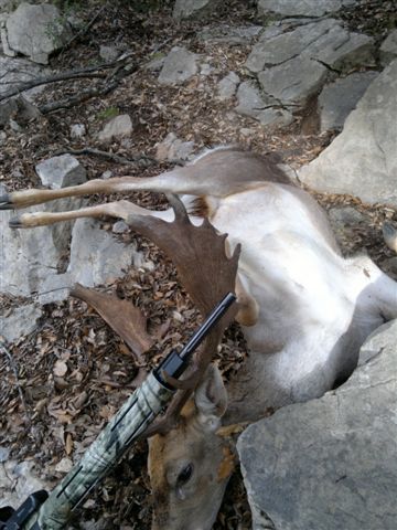 El segundo iva haciendo zetas, y al final le he tirado desde atras, lo he tenido que rematar a cuchillo, al verlo me ha parecido que tenia mas cornamenta, pero luego he visto que era un "vareto".