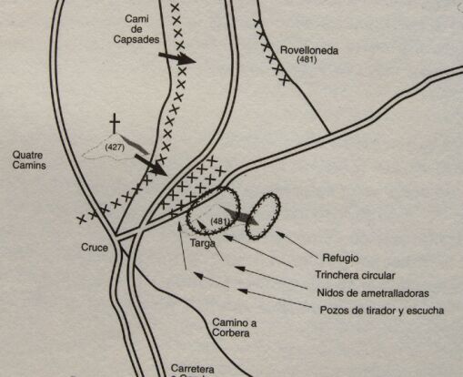 Pues, estaria bien poder ver unas fotos de como esta en la actualidad, a ver si queda algun resquicio, debe de haber restos del refugio y de trincheras. Ahí quedo practicamente deshecho por segunda vez el Tercio de montserrat, 58 muertos y 170 heridos, practicamente fueron barridos por las ametralladoras enemigas.