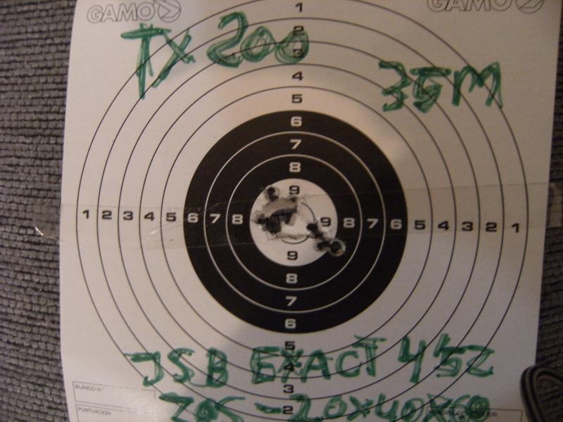 Muy buenas al fin desenvalé la gamo wisper cfr royal y rápido y raudo la puse unas anillas y un gamo 4x32,para empezar a probarla, con jsb exact 4.52,de paso tiré unos tirillos con la tx 200,todo a 25m con un saquito de daniel.Estos fueron los resultados,creo que bastante decentes.