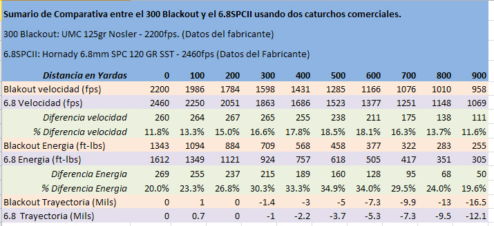 En vez de referirte a versiones de software para calculo ballistico por que no explicas como llegaste a la conclusion de que el blackout tiene la misma energia que el 6.8 hasta 400 yardas. Esto es una farsa como un castillo de grande.