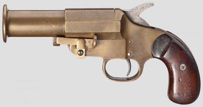 Es una pistola de señales Weber fabricada en bronce por Stantien & Becker.