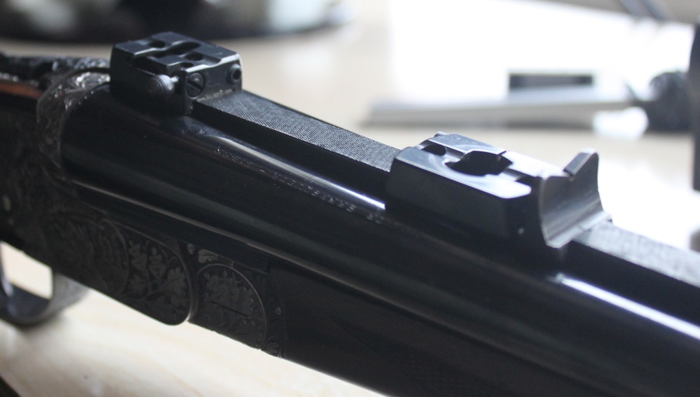 Después la limas de delante, detras, los lados, haces la V, y el canalillo para el punto dorado finísimo. Yo con ese rifle hice varios dobletes de cerca que no se te aflojaba en una semana, pero no nos engañemos, sin visor, en cuanto tiras a 80 metros a un guarro a todo trapo, es dificilísimo. Por eso le puse el Visor, un Zeiss de 4 fijos y retícula 4A. Si hubiera sido hoy, le hubiera puesto un visor mas barato (Un Meopta o Leupold son cojonudísimos) de 1-4x24.