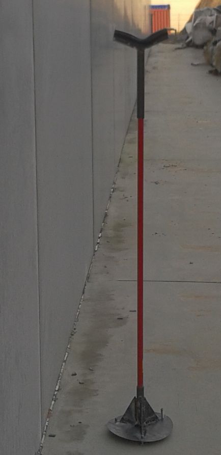 Sería una especie de palo que tendría en un extremo un apoyo blando en forma de U abierta para sujetar la carabina por el centro de gravedad. En el otro extremo tendría una "base" intercambiable: punta larga para suelo blando o trepia para suelo duro.