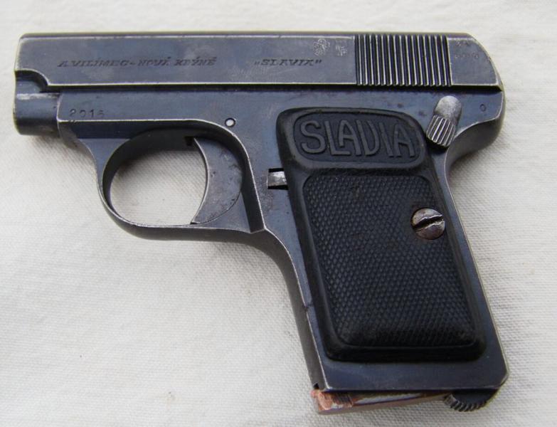La pistola es una Slavia checa fabricada por Antonin Vilimec en Nova Kdyne. Inspeccionada y aceptada en Praga en 1924.