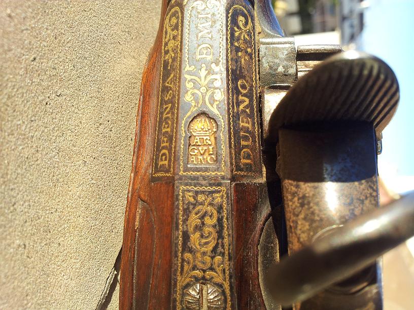 La llave por algunos detalles tampoco me parece catalana, a pesar del apellido del llavero. La caja, con el labrado de la madera y los motivos decorativos, me hace pensar más en un arma de hacia 1800 o posterior, fabricada posiblemente en el País Vasco.