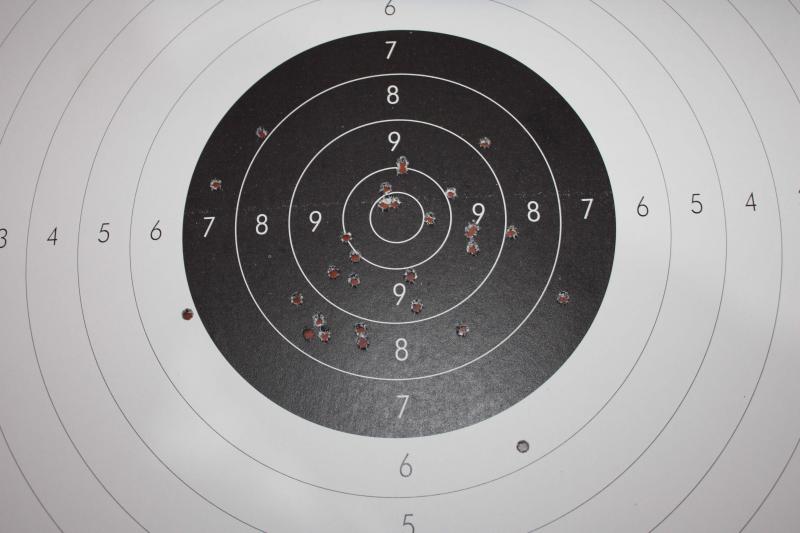 Os quiero enseñar el nuevo punto que le he fabricado a mi toz-35, pues al colocar el alza de pardini los tiros se iban muy,pero que muy bajos, como dijo el compañero Fenris,primero hice uno en un material mas blando(cobre o latón) para determinar la altura necesaria del punto,colocando el alza a la mitad de su regulación. Despues de saber la altura del punto lo hice de nuevo pero en acero, y dandole la forma más parecida al original, ahora solamente me falta pavonarlo, aunque de momente lo he pintado de negro con un rotulador para poder entrenar, os enseño las fotos y un blanco del entrenamiento de hoy...