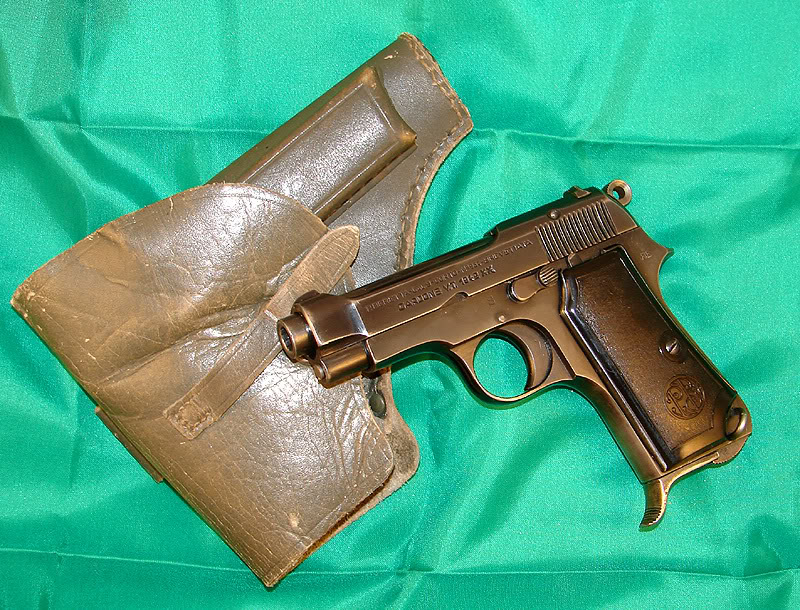 Beretta 34 o 35 con y sin funda y subfusil MP 41 en manos de una partisana.