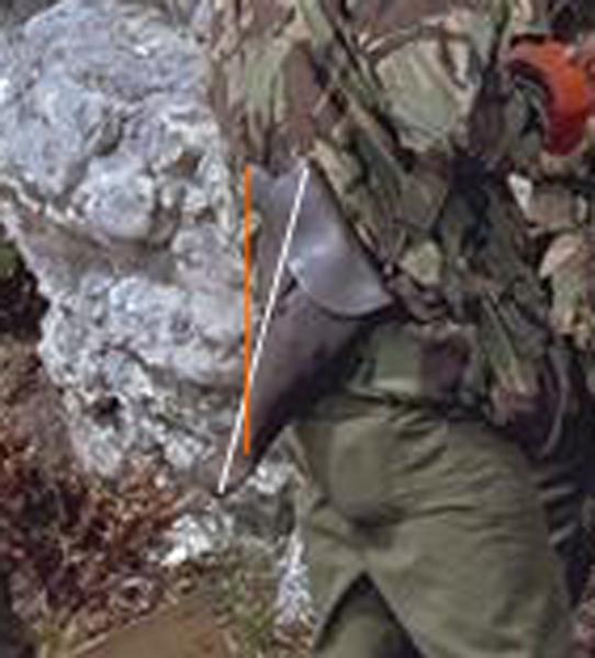 Yo sigo pensando que el tubo no llega al fondo de la funda, porque esa parte se ve como doblada. Y eso creo que se puede deber a la presencia del galluelo que va donde el guardamonte, y que impide meter el arma a fondo.