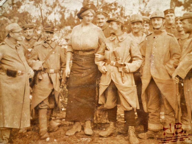 Parece una obra de teatro en el frente, en una de las treguas establecidas en algunas ocasiones.