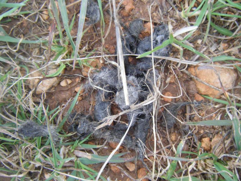 Sabriais decirme a quien pertenecen estas heces que saque de un matojo enmedio del camino?Pueden ser de zorro? Ña disposicion de las heces no es la original, porque lo movi con un palo.
