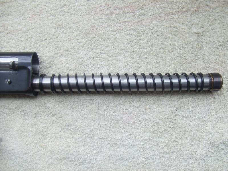 El cañón también tiene una anilla guía que desliza sobre el tubo del cargador, con un parte cóncava en su lado posterior, que se introduce en el anillo de bronce que esta biselado en su extremo anterior, esta parte cóncava tiene la misión de comprimir el anillo de bronce contra el tubo del depósito de alimentación cuando el cañón retrocede.