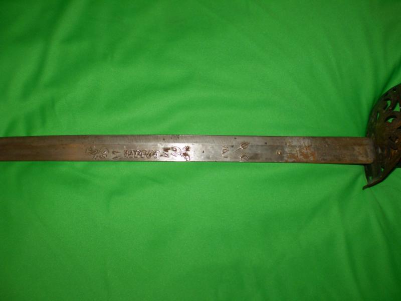 Por los dibujos y forma de la hoja ,diria que es del 19,o,principios del 20,de origen ingles y con influencia colonial.seria interesante ver la forma de la punta de la hoja.Saludos.