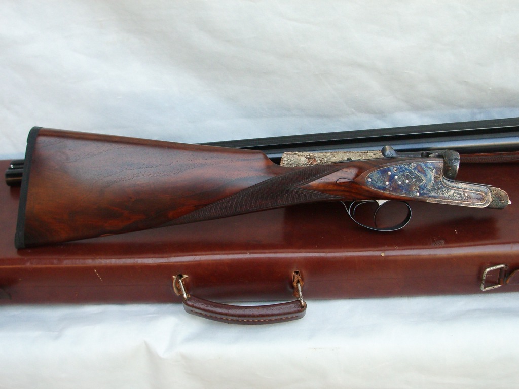 Aquí os presento una finísima AYA 53 de 1947 (los primeros años de la marca). Nº de serie 764. El grabado es un ejemplo de laboriosidad y delicadeza dificil de encontrar en escopetas actuales. Nada que ver con el modelo 53 posterior. Lleva la correa retractil oculta en la culata. Nada que envidiar a ninguna escopeta inglesa.