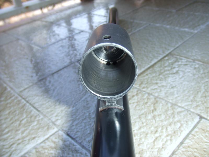 Los gases sobrantes serán purgados por el orificio practicado en la parte inferior del colector que así mismo comunica con el practicado en el guardamano, la cantidad de estos dependerá de la carga que disparemos, a mas presión en el cañón mas gases sobrantes y por lo tanto más gases purgados, ¿porque?