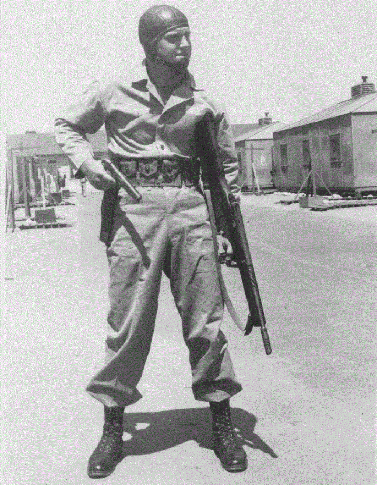 Es un Paramarine norteamericano durante la WW2 que lleva efectivamente un subfusil Reising Modelo 50 en una mano y una pistola 1911, seguramente por época una del modelo A1, en la otra.