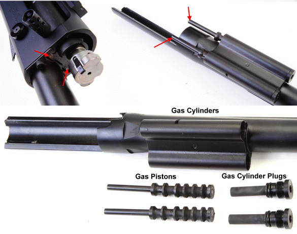 Conjunto de colectores y pistones de la Versamax situado de forma lateral a la recamara