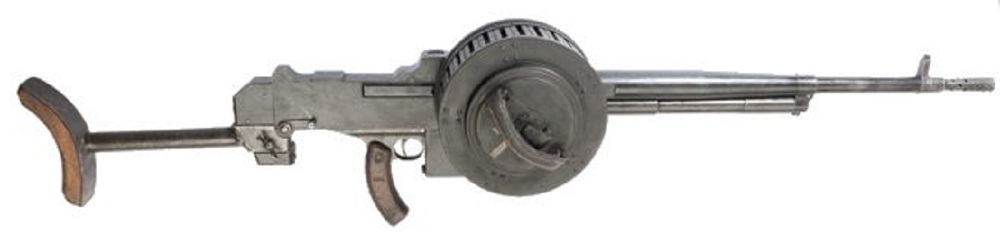 Fue poco más que un prototipo que además usaba cargadores de otro arma pero creo que el país y la época están claros y además su peculiar estética seguro que facilitará mucho las cosas a la hora de identificarla.
